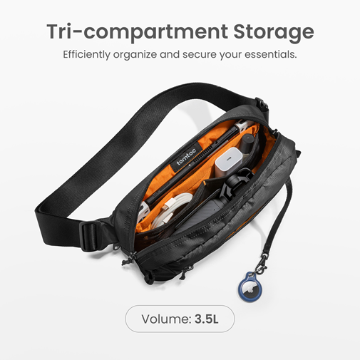 Tomtoc Aviator-T33 Sling Bag je kompaktna i svestrana torba namenjena korisnicima koji traže praktično i sigurno rešenje za nošenje osnovnih stvari — poput telefona, novčanika, Nintendo Switch OLED, iPad mini i drugih gedžeta. Torba ima RFID zaštitu koja čuva podatke sa kartica od neovlašćenog skeniranja, vodootporan materijal i više pregrada za organizaciju sitnih predmeta. Idealan je proizvod za distributere putne i lifestyle opreme, kao i za prodavnice sa tech dodacima.